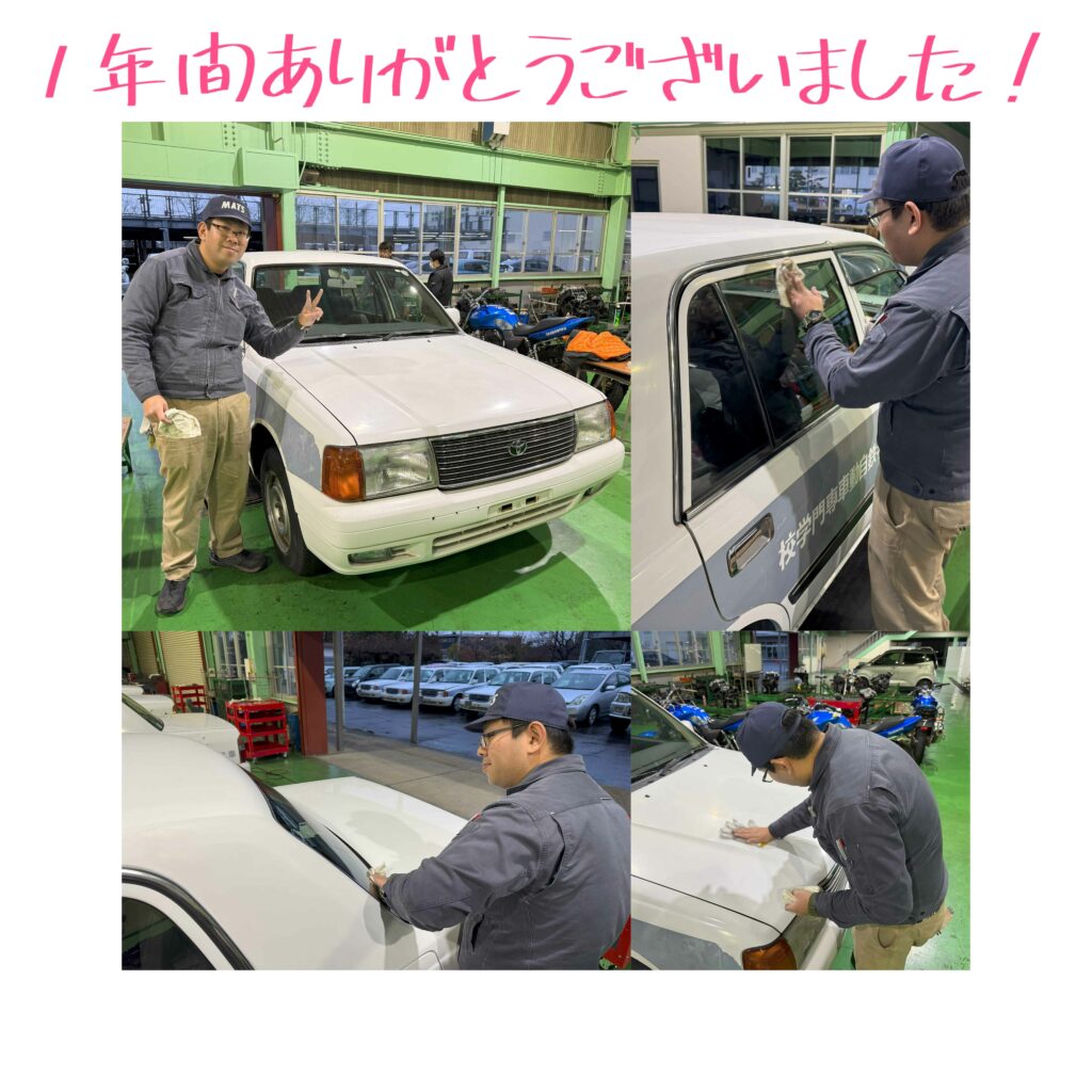 一年の最後は、実習でお世話になった車をピカピカにワックス掛けしました😊