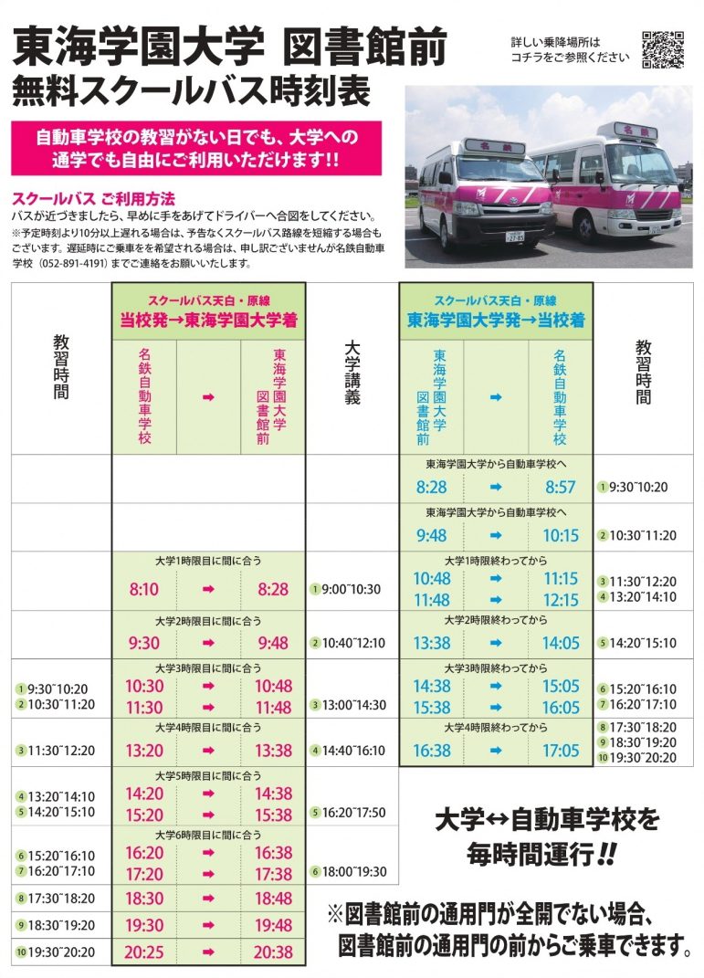 【当校は東海学園大学のキャンパス内「図書館前」にスクールバスが停車する自動車学校です!】