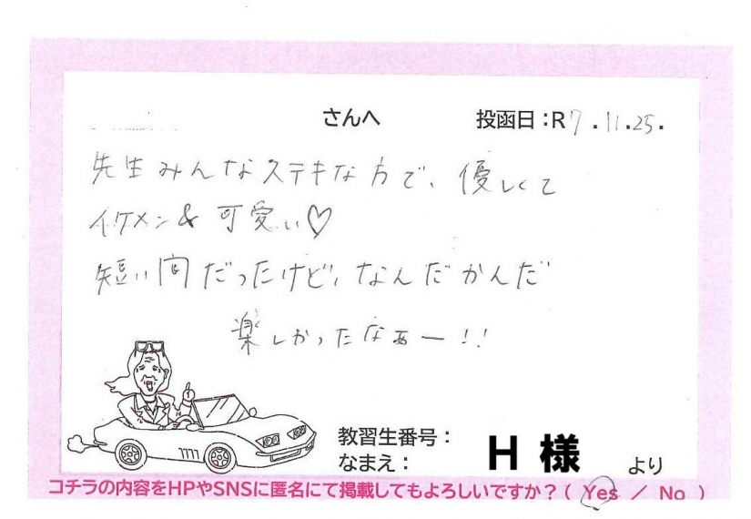 H様、楽しいカーライフをお過ごしくださいませ🚗✨