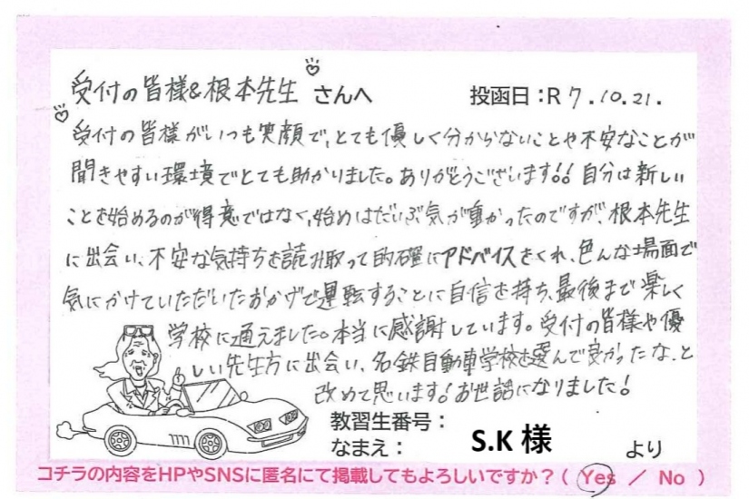 当校に通っていただいたお客様の感想や、当校指導員の意外な一面が見られるかも!?