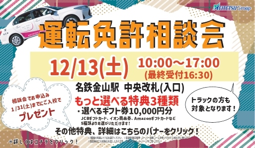 【名鉄自動車学校】入校申込・お問合せ 0120-141-396